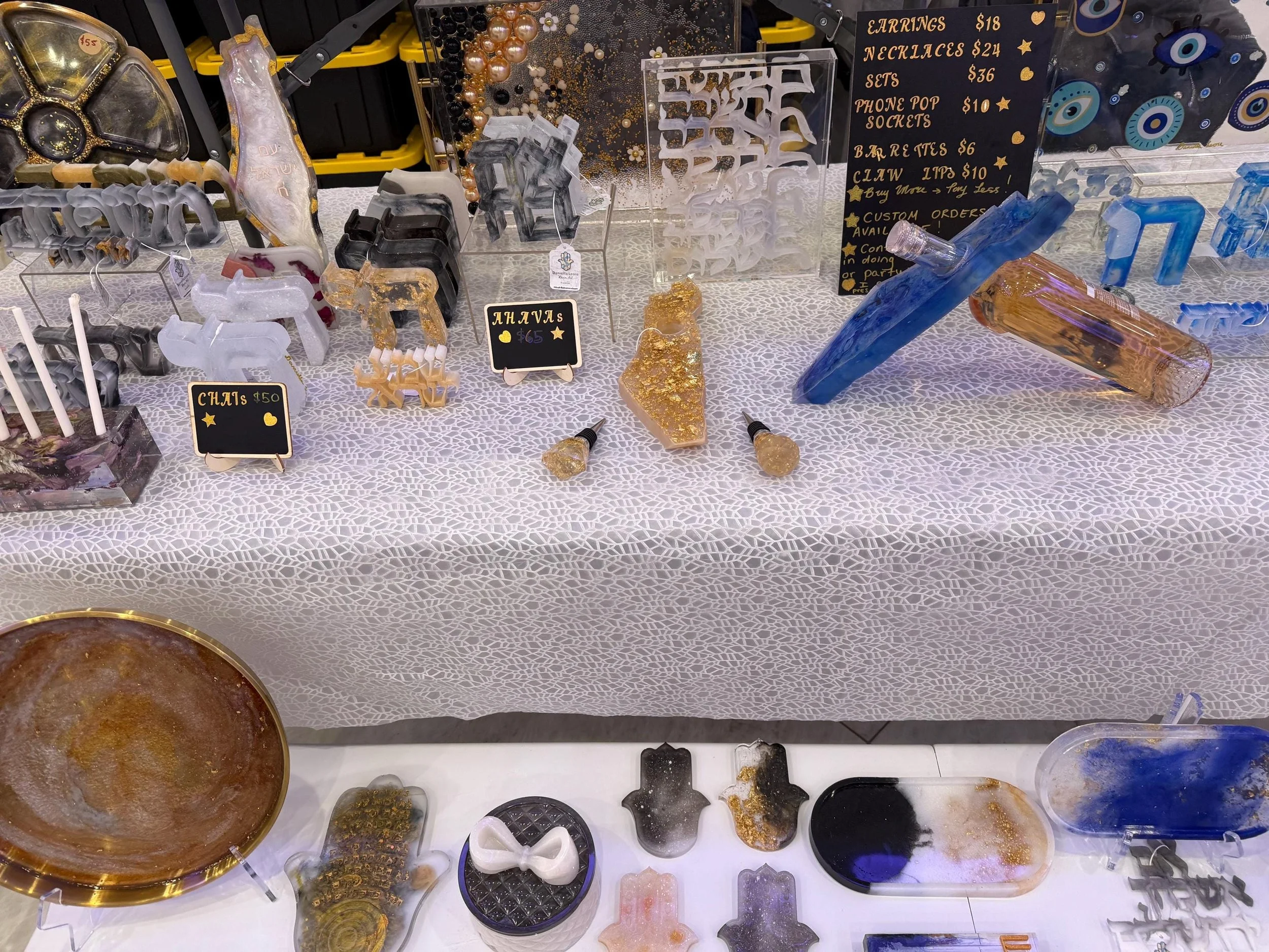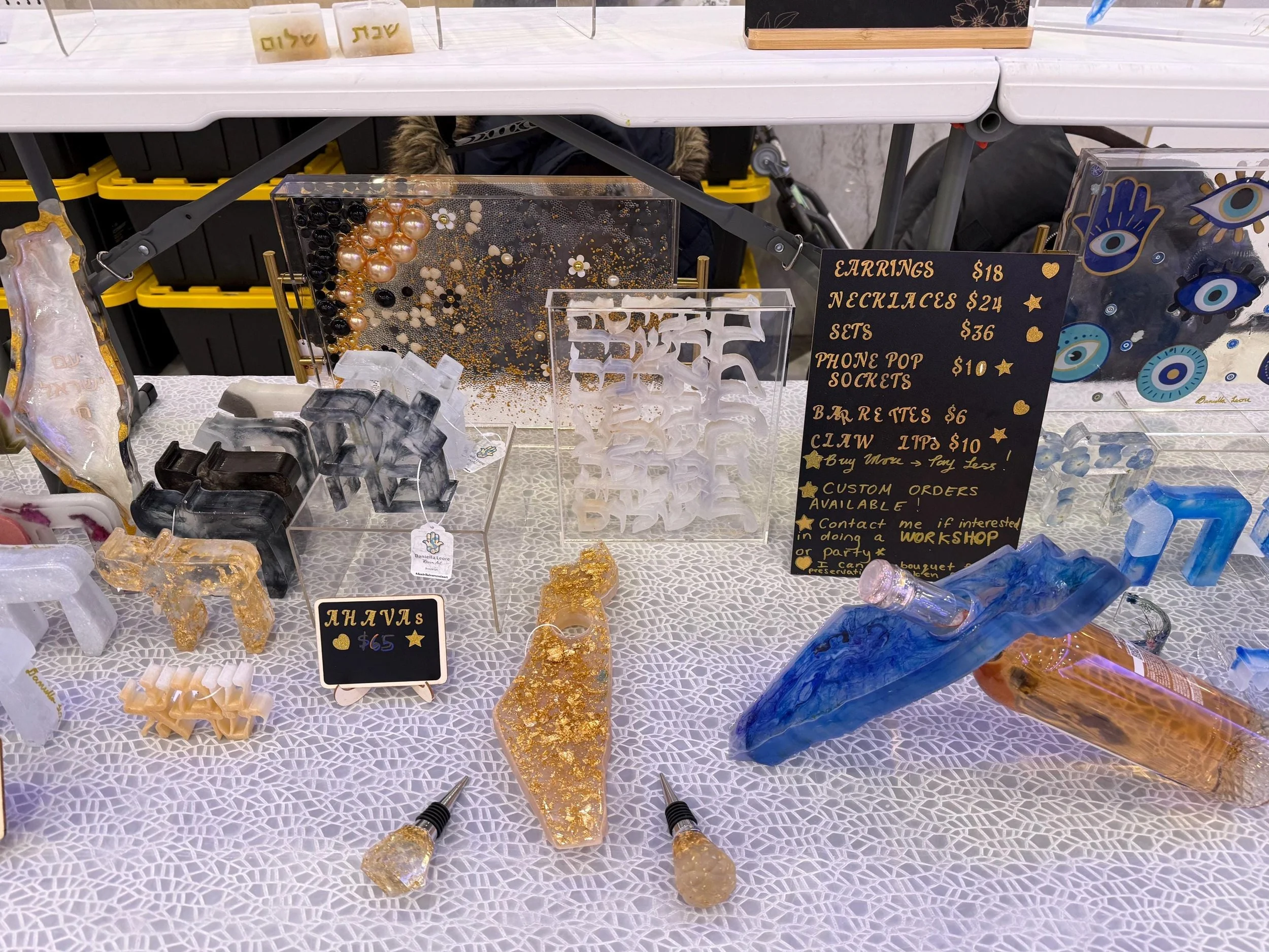 All / Judaica Clear All Jewelry Judaica Paddles Trays Wedding Decor Filters Categories All Jewelry Judaica Paddles Trays Wedding Decor Filter Clear Filter Handmade Resin Shabbat Shalom Challah Board: Hebrew Judaica with Gold Handles $65.00 Sold out Birkat HaBayit Hebrew Home Blessing | Modern Judaica Resin Art | 3D Hebrew Letters in Acrylic Block | Jewish House Gift | $85.00 Sold out Blue Resin Popsicle Art with Magen David | Judaica Wall Art Gift | Acrylic Shadow Box | Handmade Jewish Decor | Modern Israel Gift $85.00 Blue Judaica Resin Popsicle in Clear Acrylic Shadow Box • Magen David Art • Modern Jewish Decor • Hanukkah Gift $65.00 Blue Israel Map Shadow Box | Judaica Resin Wall Art | Modern Jewish Home Decor | Gift for Housewarming • Bat Mitzvah • Jewish Holidays $125.00 Modern Hebrew Shalom Shadow Box – Silver Gold Cream Clear w/ Gold-Flake Accents $65.00 Hebrew “Savta” Shadow Box – Gold Leaf Judaica Gift for Grandmother (5x7) $65.00 Got Chutzpah Resin Shadow Box | Judaica Gift | Jewish Home Decor - Handmade Gift $136.00 Resin Israel Map: Judaica Wall Art with “Am Yisrael Chai” $155.00 5x7 “Oy Vey” Resin Shadow Box | MADE TO ORDER | Jewish Humor Decor | Resin Letter Judaica | Hanukkah Gift Idea $85.00 Pink Magenta Resin Challah Board • Tempered Glass Top • 12x16 Judaica Board • Gold Flake and crushed glass Design • Modern Shabbat Gift $165.00 Evil Eye Acrylic Serving Tray with Gold Handles – Jewish & Greek Home Decor, Protective Nazar Tray, Housewarming Gift $98.00 Handmade "Mishpacha" Resin Sign: Gold & Green Jewish Family Wall Art $78.00 Hebrew "Mishpacha" Resin Sign – Handmade Jewish Family Wall Art – custom colors available $78.00 Hamsa with Hebrew Blessing for the home – Resin Judaica Art- custom $85.00 Blue & Gold Challah Board | 12x16 Glass Board with Resin Underside and crushed glass on top| Cut-Safe Judaica Gift | Shabbat Hostess Gift | $165.00 Judaica Pop Socket for Phone Israel Map Magen David • Custom Resin Phone Grip $18.00 12x16 Blue Resin Challah Board with Tempered Glass | Ocean Judaica Gift | Shabbat Challah Tray | Custom Colors | Hanukkah Gift Idea $165.00 Handmade Resin Hamsa Hand: Hebrew Blessing & Dried Flowers - Jewish Home Decor $85.00 Israeli Map Resin Wine Holder – Unique Judaica Home Décor & Custom Gift $136.00 Funky Clear Resin Pomegranate Wall Hanging – Rosh Hashana Decor with Seed Charms $54.00 Birkat HaBayit Hebrew Home Blessing | Modern Judaica Resin Art | 3D Hebrew Letters in Acrylic Block | Jewish House Gift | $156.00 Custom Wedding Mezuzah Made with Chuppah Glass | Israel Mezuzah Case | Jewish Wedding Keepsake | Shattered Glass Mezuzah-Registry Gift $165.00 Custom Name Shadow Box | Hebrew English Name Art | Personalized Acrylic Shadow Box | Resin Letter Name Sign | Judaica Gift | Nursery Decor $118.00 Neon Chai Jewish Decor | 90s Pop Judaica | LED Light Chai Sign | Bat Mitzvah Gift | Colorful Hebrew Art from $108.00 Custom Mini Hebrew 'Simcha' Resin Sign: Silver Judaica Joy Word Art $36.00 Personalized Acrylic Name Tray | Custom English or Hebrew Name | Nursery Decor | Girly Room Tray | Gold Handles 9.5x7x1.4in Bat Mitzvah Gift $118.00 Ahava אהבה Bridal Keepsake 4x4x1.2 inches |Love Sculpture| Jewish Wedding Gift |Custom Floral|Wedding Bouquet Preservation-Wedding Registry from $218.00 Chuppah Glass Heart Keepsake|Wedding Glass Preservation in Resin|Custom Heart-Shaped Judaica Gift | Jewish Wedding Memory|Smashing Glass Art from $155.00 Chuppah Glass Passover Seder Plate | Wedding Glass Keepsake Judaica | Crushed Glass Resin Pesach Plate | Custom Jewish Holiday Heirloom from $438.00 Ahava אהבה Bridal Keepsake 7x7x1.2 inches |Love Sculpture| Jewish Wedding Gift | Custom Floral| Wedding Bouquet Preservation from $274.00 Custom Wedding Glass Mezuzah |Smashed Chuppah Glass Mezuzah Case |Personalized Judaica Gift |Resin Mezuzah with Your Wedding Shards-Registry $102.00 Custom Crushed Glass Resin Keepsake – Turn Meaningful Pieces Into Forever Art- Wedding, Chuppah, Judaica, Home Decor –Made to Order-Registry from $78.00 Custom Chuppah Glass Menorah | Wedding Glass Preservation Keepsake | Resin Hanukkah Menorah | Jewish Wedding Gift | Shattered Glass Judaica from $354.00 Custom Israel Map with Chuppah Glass | Jewish Wedding Keepsake | One-of-a-Kind Registry Gift from $258.00 Custom Israel Map with Preserved Wedding Flowers – Bridal Bouquet Keepsake & Perfect Registry Gift from $258.00 Custom Challah Board with Broken Plate or Chuppah Glass | Tempered Glass Cutting Board | Heirloom Jewish Wedding & Family Keepsake 12x16 in from $425.00 Custom luxery Chess Set with Chuppah Glass Board | Jewish Wedding Keepsake | Unique Judaica Gift | Perfect Wedding Registry Gift 12x12x.75in $548.00 Modern Hebrew Shalom Beit Shadow Box – Silver Gold Cream Clear w/ Gold-Flake Accents $110.00 No results found No results match your search. Try removing a few filters.