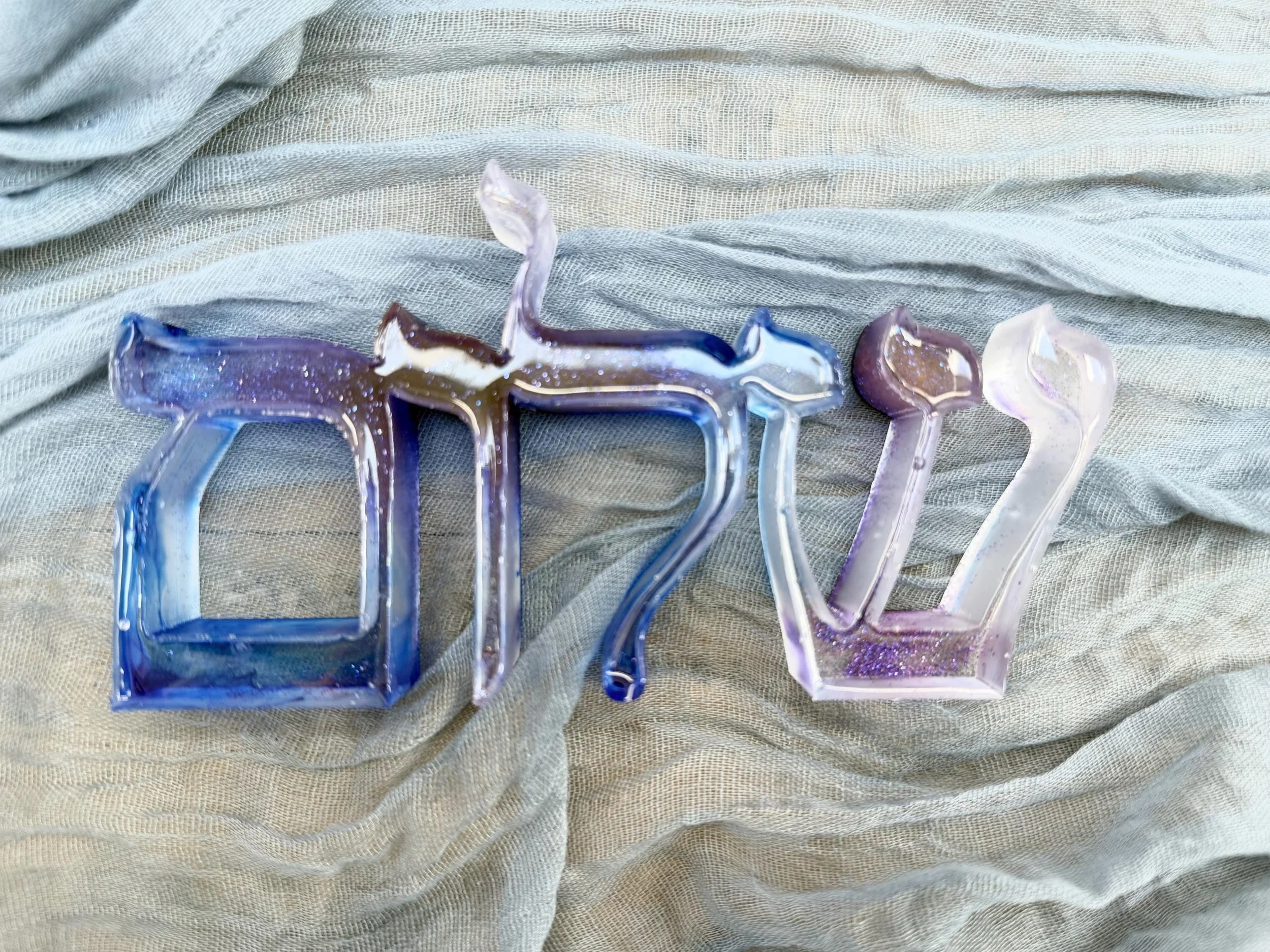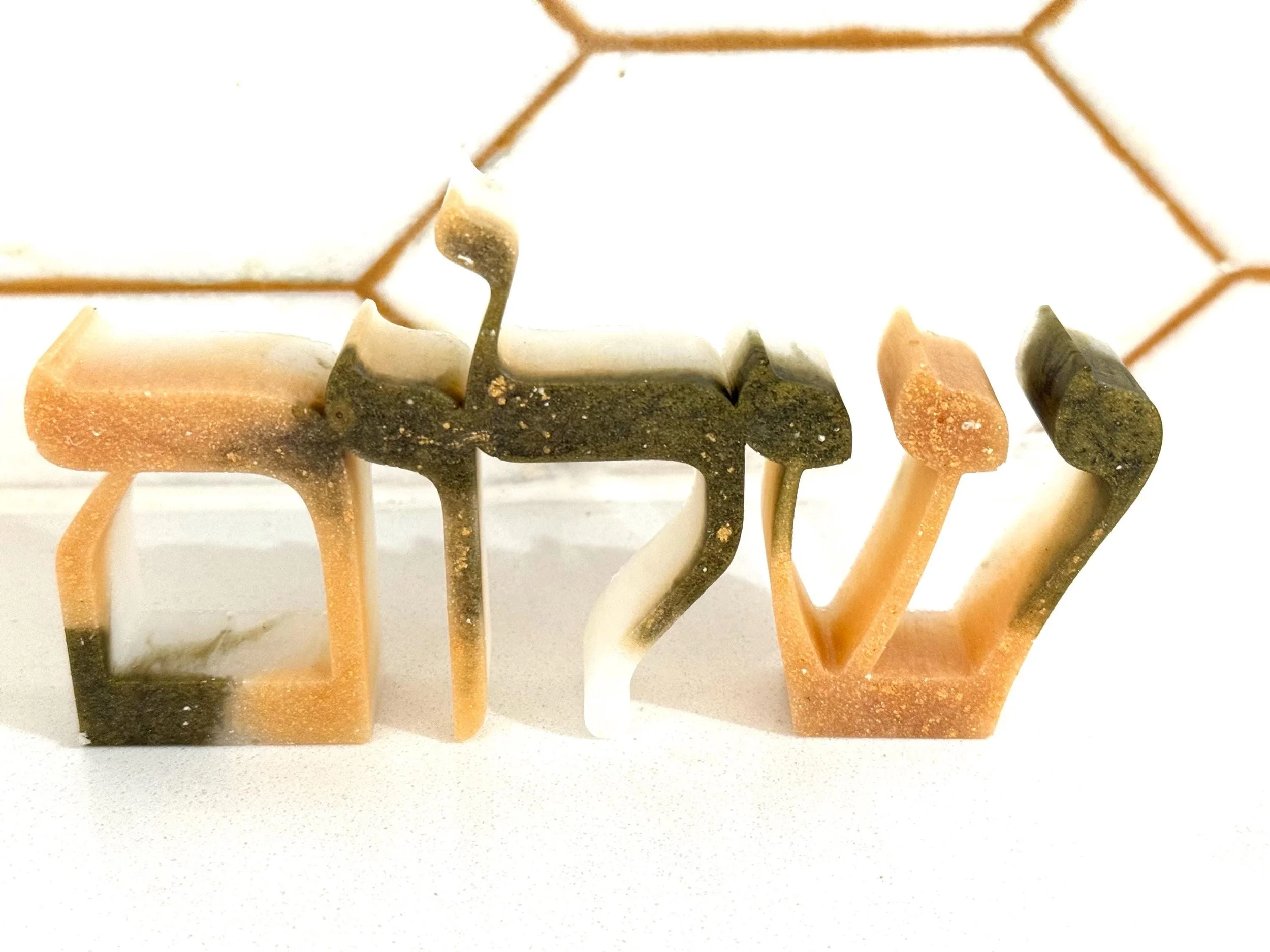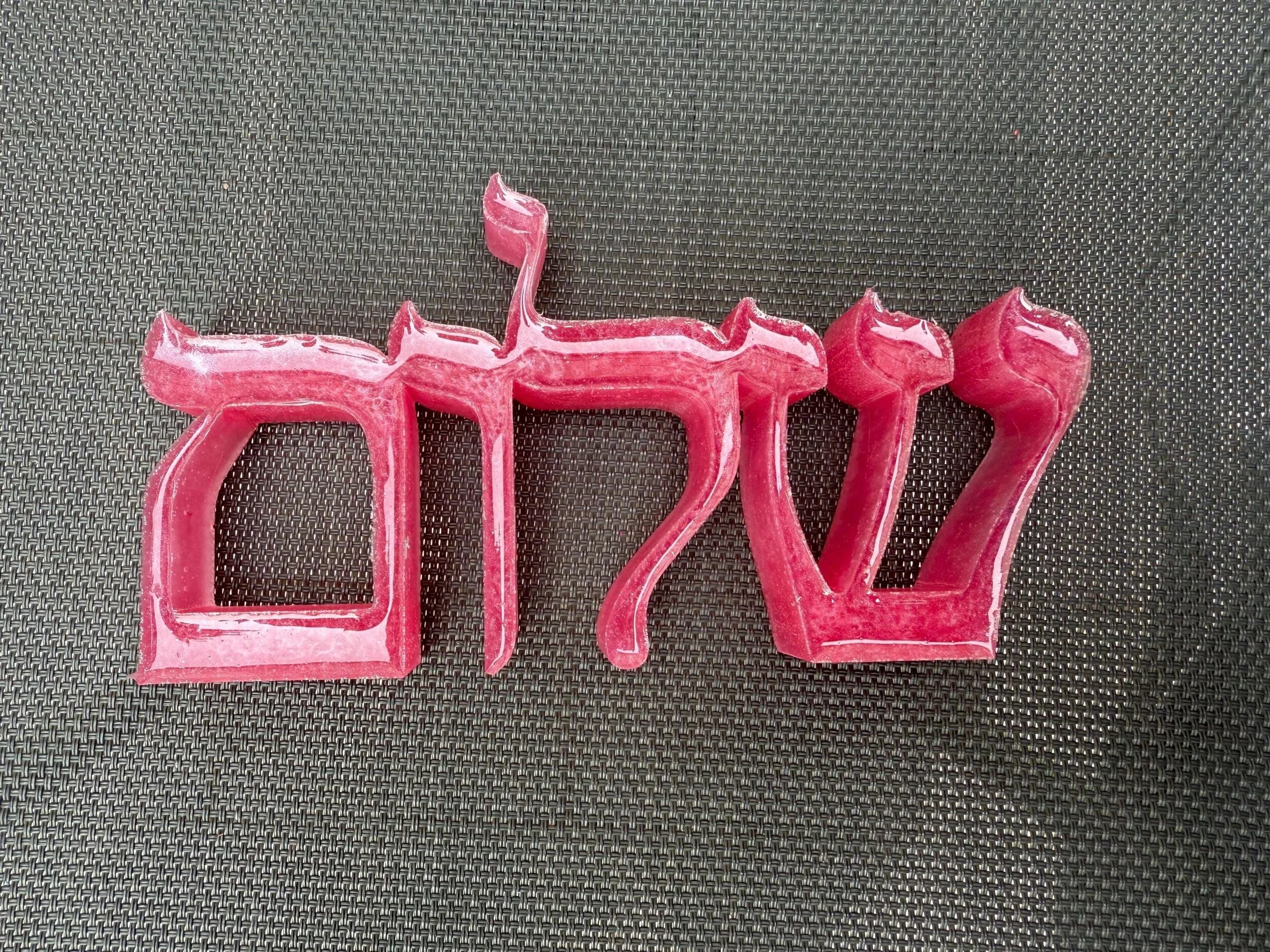 Add a meaningful and artistic touch to your home with this custom handmade resin "Shalom" sign, written in beautifully stylized Hebrew calligraphy. "Shalom" means peace, wholeness, and harmony—making this piece a perfect gift or spiritual accent for any room. Carefully crafted in any color you want, this piece can have a glossy or matte finish and sculptural texture that gives it a modern yet timeless feel. Ideal for wall décor, desk display, or gifting during Hanukkah, housewarmings, or Jewish celebrations, this unique artwork blends tradition with contemporary art. 6x3x1 inches