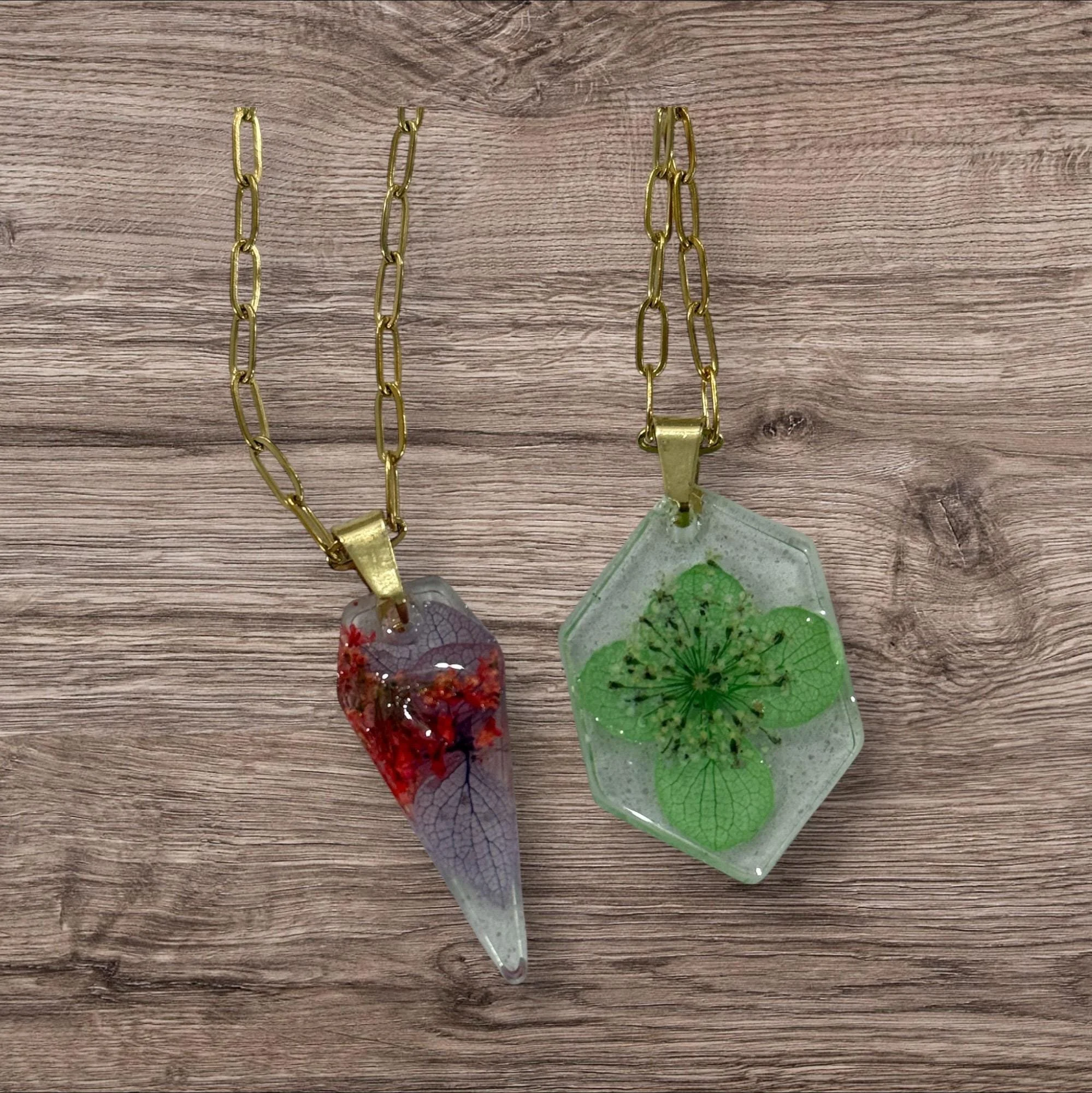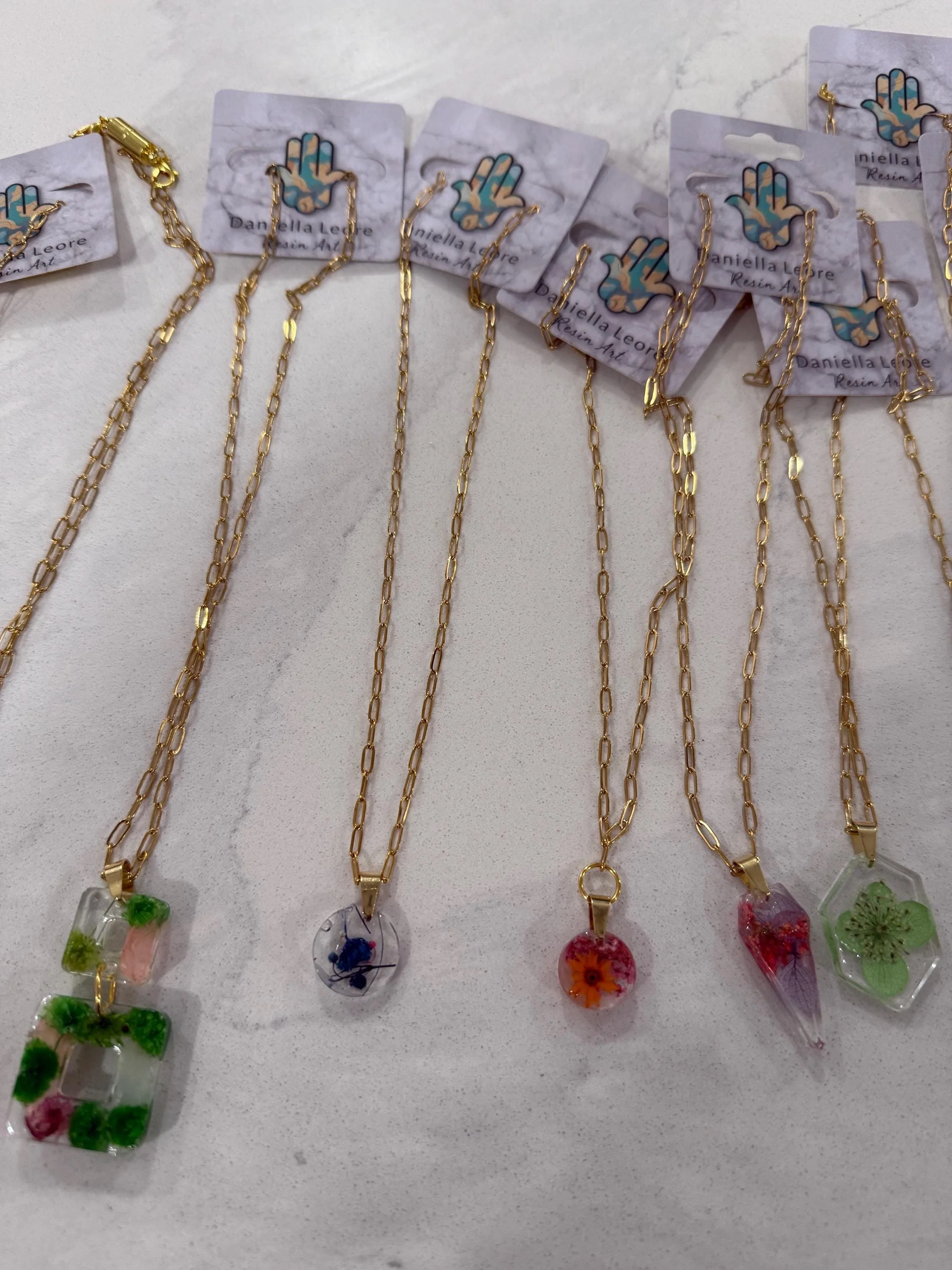 ✨ Handmade Resin Flower Necklaces — Gold Plated Chain ✨